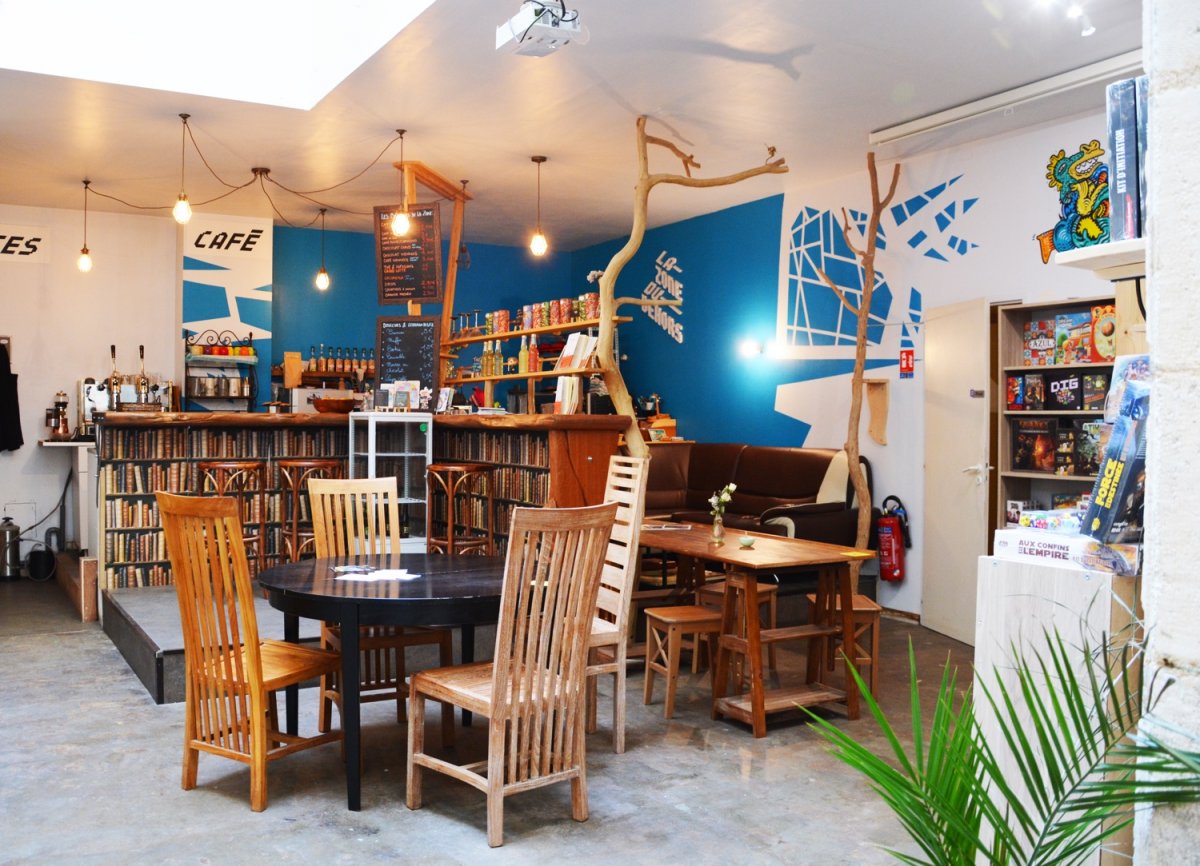 La Zone du Dehors est une librairie-café-jeux. Ce n’est pas un concept, mais plutôt l’envie d’avoir au même endroit tout ce qui nous fait plaisir, une rencontre de nos passions. C’est un lieu qu’on veut convivial avant tout.