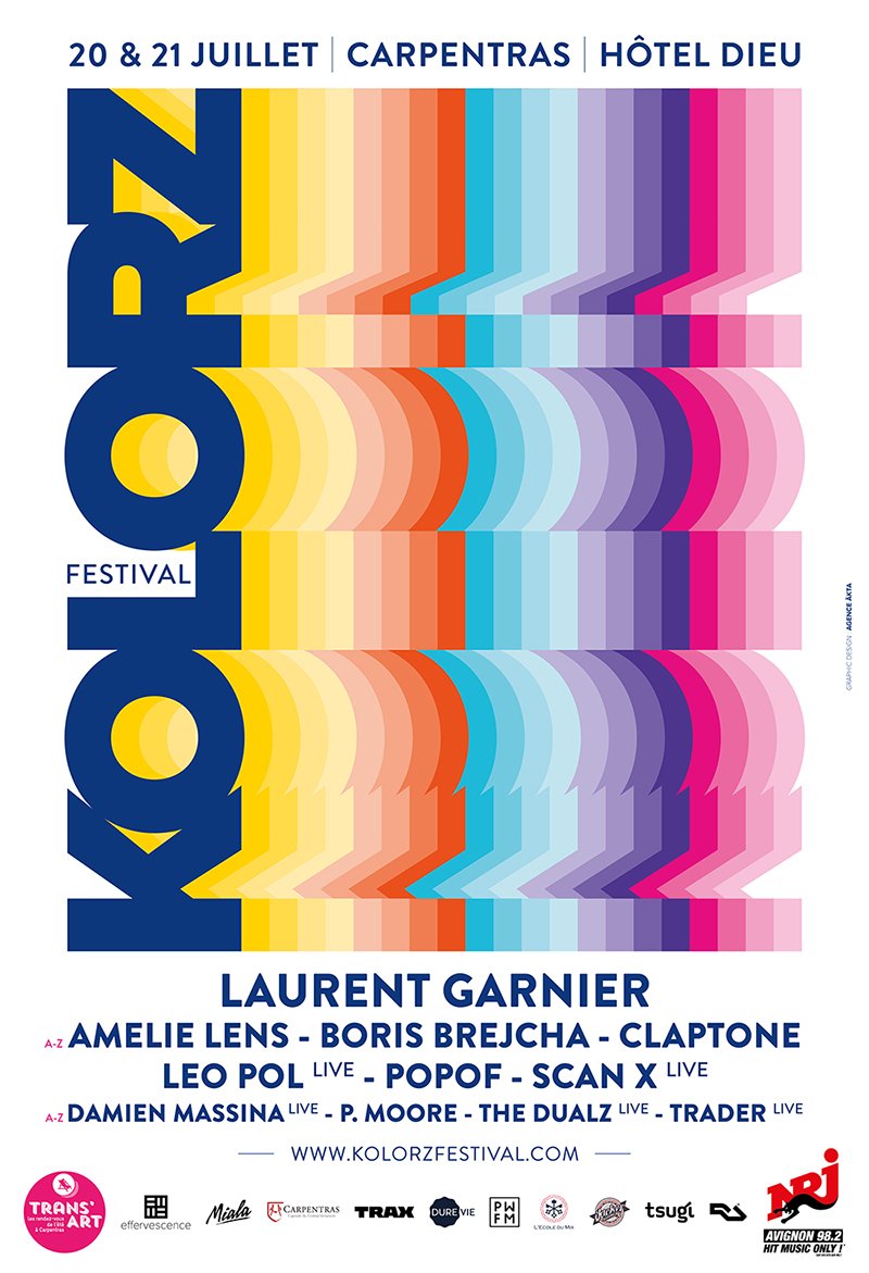 Le Kolorz Festival se déroulera les 20 et 21 juillet dans la cour de l’Hôtel-Dieu de Carpentras. Au programme, un panel éclectique des musiques électroniques avec deux soirs de DJ Sets et de Live épiques, en compagnie d’artistes majeurs des scènes techno/house françaises et internationales. L’édition 2018 s’annonce très large : les vétérans et pionniers, à l’instar du ‘‘Pape’’ Laurent Garnier et de son fidèle acolyte Scan X ou du DJ P.Moore. Dans les rangs de la jeune génération, on retrouvera notamment Amélie Lens, nouvelle coqueluche de la scène Club européenne, Charlotte de Witte ou Leo Pol, Popof et « l’oiseau de nuit » Claptone ainsi que Boris Brejcha. Un choc des générations qui ne devrait pas manquer de vibrations et de rythmes.