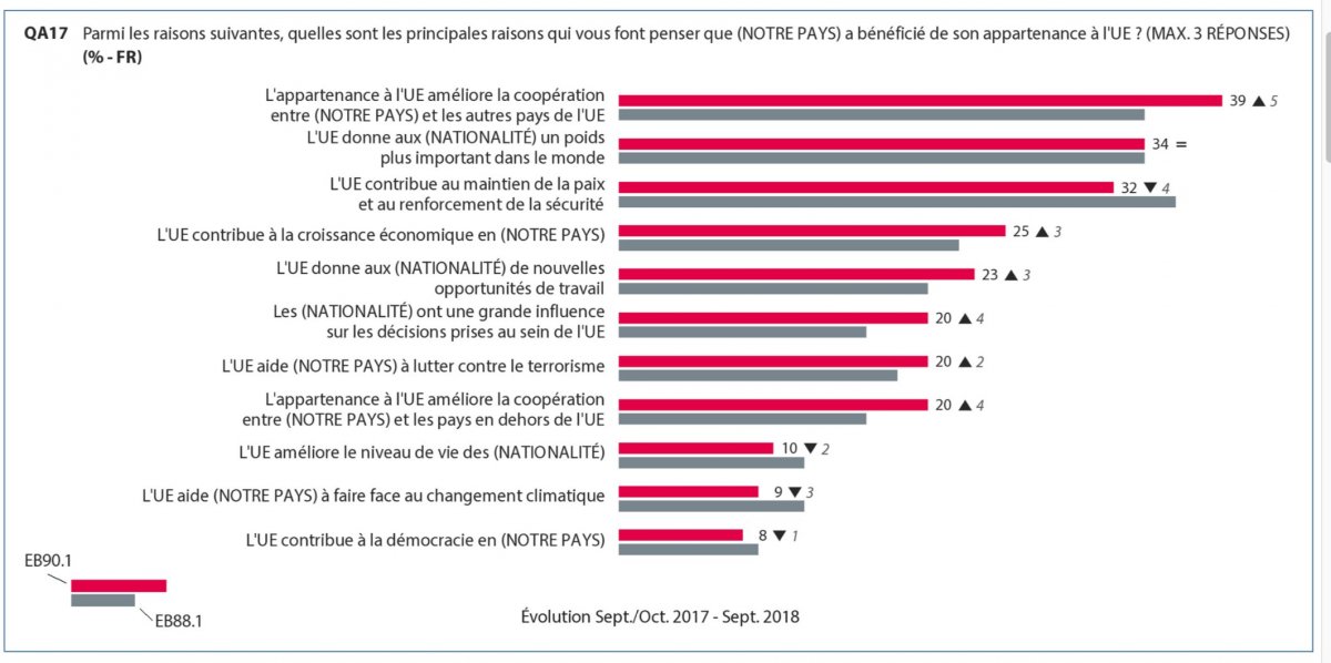 Enfin, cet Eurobaromètre n’explique en rien la montée en puissance des courants souverainistes et eurosceptiques qui inquiètent de plus en plus Bruxelles et certains chefs d’États européens dont Emmanuel Macron qui affirmait vouloir combattre « le nationalisme et la lèpre populiste » dans un discours en juin 2018 à Quimper.