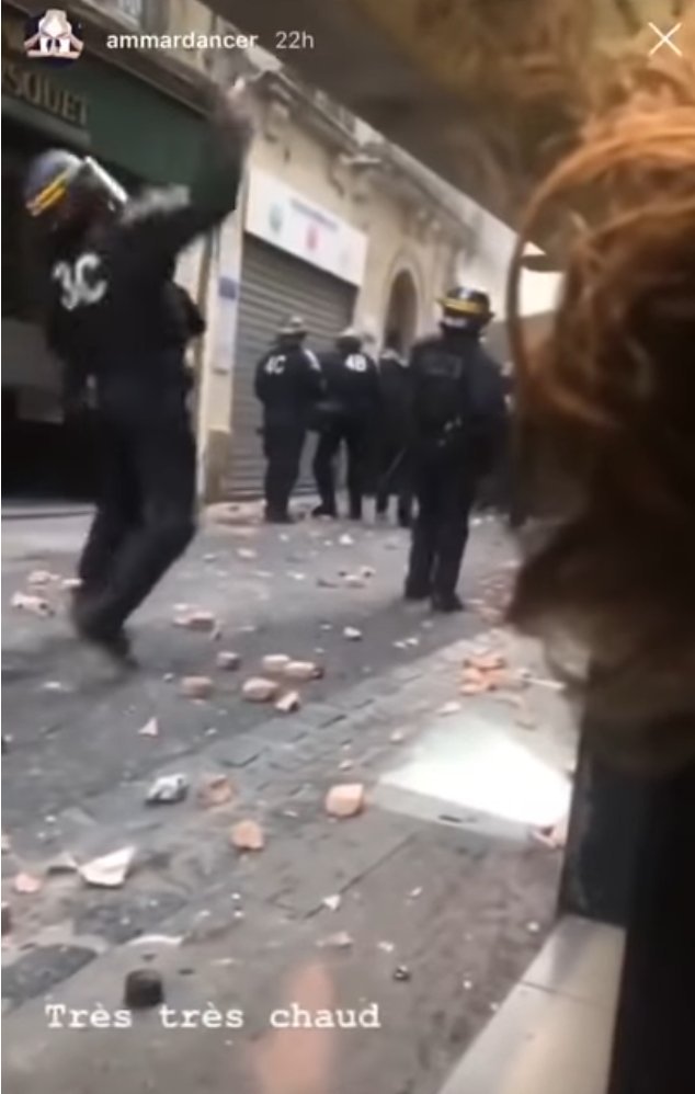 Cette vidéo reçue aujourd’hui montre distinctement deux CRS saisir des pavés dans une rue du centre ville de Montpellier qu’ils lancent aussitôt en direction des manifestants. Cette scène se déroule dans la rue de l’Aiguillerie à Montpellier et elle a été filmée derrière une vitrine par une personne réfugiée dans un commerce.