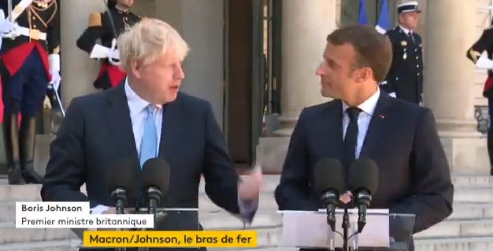 Lors de la rencontre entre Emmanuel Macron et Boris Johnson en marge du G7 à Paris, le Premier Ministre britannique lors de son allocution sur le perron de l’Elysée n’a pas manqué de rappeler au Chef de l’Etat français les préalables de la démocratie, notamment sur le Brexit en prévision d’un accord sur cette question épineuse :  «Quand il y a un référendum, il faut suivre les consignes données par les électeurs, c’est pourquoi nous devons, le 31 octobre, quitter l’#UE, avec ou sans accord » .