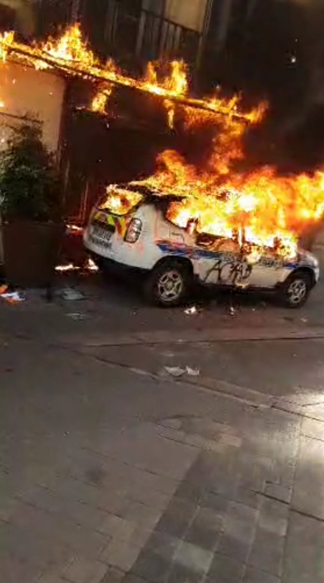 (Vidéo) Des Gilets jaunes tentent d’éteindre le feu qui embrase une voiture de police à Montpellier