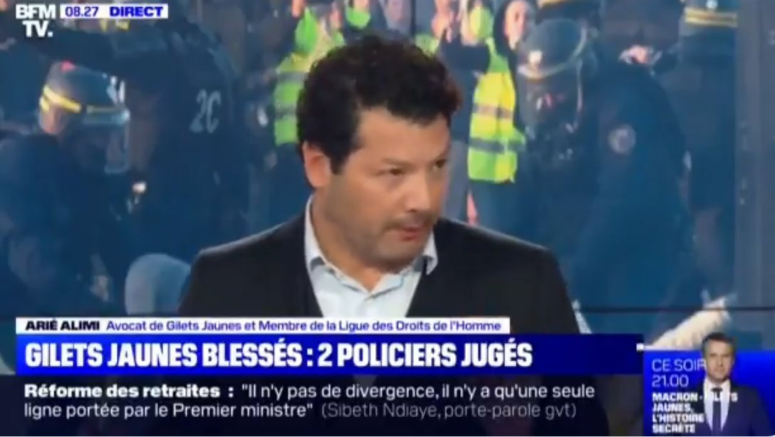 Arié Alimi, avocats de Gilets Jaunes et Membre de la Ligue des Droits de l’Homme était l’invité de BFM TV ce 8 novembre.
