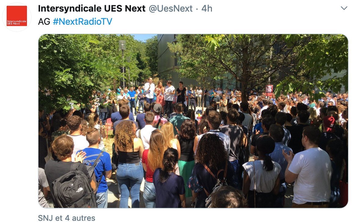 Suite à notre article du lundi 22 juin concernant le plan social pour les salariés de NextRadio TV, une assemblée générale s’est réunie ce mardi 23 juin à 12H30 avec une présence massive de salariés de BFMTV, RMC Story et RMC Découverte, la radio RMC, O1Net.