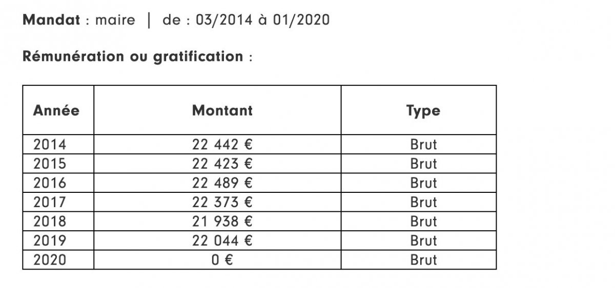 Son mandat de maire lui a rapporté aux alentours de 133709 euros brut sur la période entre 2014 à 2019.