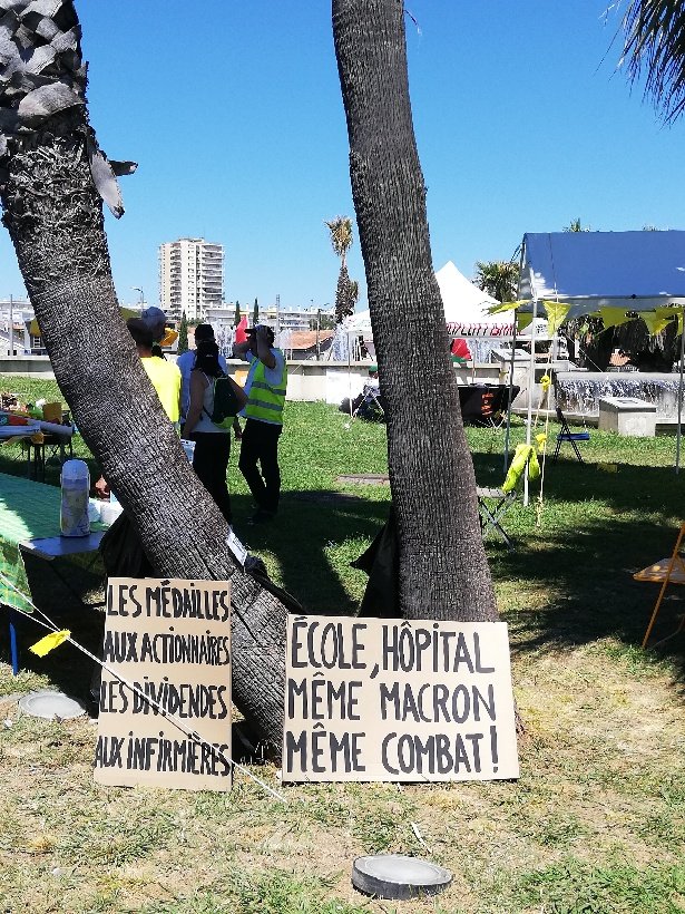 Du côté de Montpellier, les Gilets Jaunes organisent chaque semaine une assemblée générale pour évoquer de très nombreux sujets. Ils se montrent également sur le rond-point d’arènes de temps à autre et réfléchissent aussi à une coordination plus large au niveau régional pour peser plus fortement et faire entendre leurs doléances au plus haut niveau de l’Etat. Ce moment convivial au coeur de l’été sur le pelouse du grand rond-point d’arènes a conforté les Gilets Jaunes de Montpellier à continuer de « revendiquer le droit à un monde meilleur » .