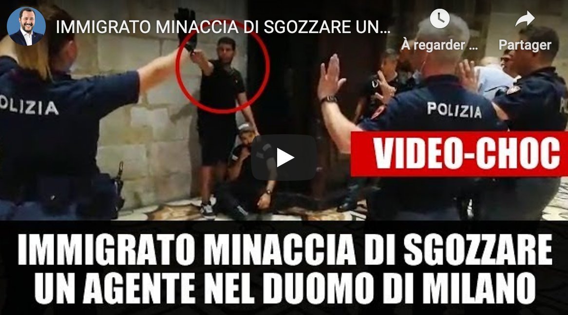 Matteo Salvini, leader de la Lega, a publié une vidéo effrayante de 13 minutes sur sa chaîne Youtube où l’on voit un individu, qui serait un immigré égyptien armé d’un couteau tenir en otage un policier dans le Dôme de Milan.