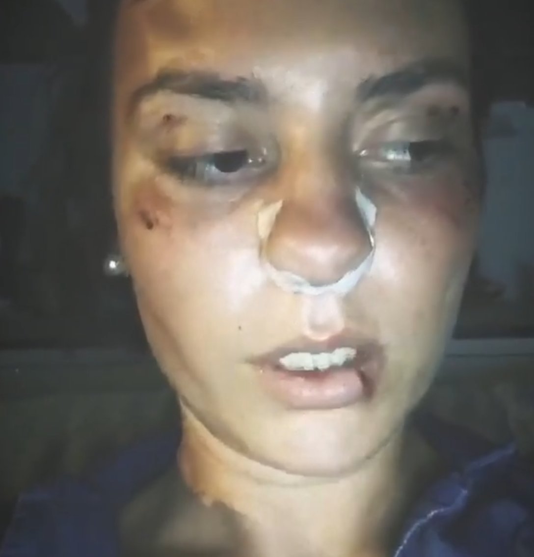 « Je fais cette vidéo pour expliquer mon agression. Je me suis fait agresser à Nîmes mercredi matin par 3 individus. Je fais cette vidéo pas pour me faire plaindre mais pour montrer aux femmes et aux hommes qu’il faut en parler qu’il faut se battre contre ça, qu’il ne faut pas avoir honte. Ce n’est pas à nous d’avoir honte c’est à nos agresseurs , à nos violeurs, à nos assassins que c’est à eux d’avoir honte. Il faut en parler. Il faut porter plainte. Il faut en parler on le voit partout autour de nous mais quand ça nous arrive ça nous change notre vie à tout jamais. C’est quelque chose d’anormal en 2020 ça ne devrait pas exister en plus que ce n’était de la violence purement gratuite. Je promenais mon chien, j’ai croisé ces trois individus. L’un d’eux me dit « t’es bonne ». Je ne réponds pas, je continue mon chemin puis il (m’)insulte de sale pute. Là, j’ai répondu et puis c’est parti de là. J’ai fini ma phrase, j’ai senti un bras m’attraper puis un coup de poing, deux trois puis je tombe une première fois, je me relève, on me rejette au sol. Un homme pose son pied sur mon thorax puis enchaîne les coups de poing au visage pour finir par une série de coups de pied jusqu’à que je tombe inconsciente. Je me réveille quelques minutes plus tard toujours sur ce trottoir mais plus personne à coté de moi juste mon chien qui attendait sagement. Je suis partie à l’hôpital pour une série d’examens cerveaux, corps puis après de longues et longues heures à l’hôpital direction le commissariat où les gendarmes ont été très gentils. Il faut en parler. Je crois en Dieu et je remercie dieu d’être toujours en vie aujourd’hui d’aujourd’hui. »