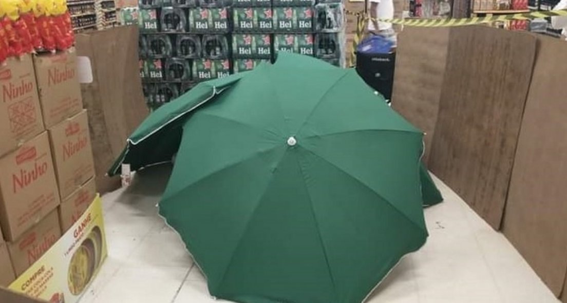 Un homme décédé recouvert de parapluies dans un magasin au Brésil