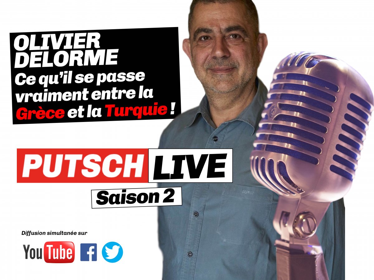 Dès ce lundi 24 août, l’émission Putsch Live lance sa saison 2 après la pause estivale. Elle sera diffusée 3 soirs par semaine à 18H00 (lundi, mercredi et vendredi). Pour sa première de la rentrée, l’historien et essayiste Olivier Delorme spécialiste de la Grèce et des Balkans qui vit lui-même sur une petite île grecque viendra décrypter le conflit entre la Grèce et la Turquie qui ne cesse d’empirer au fil des jours.