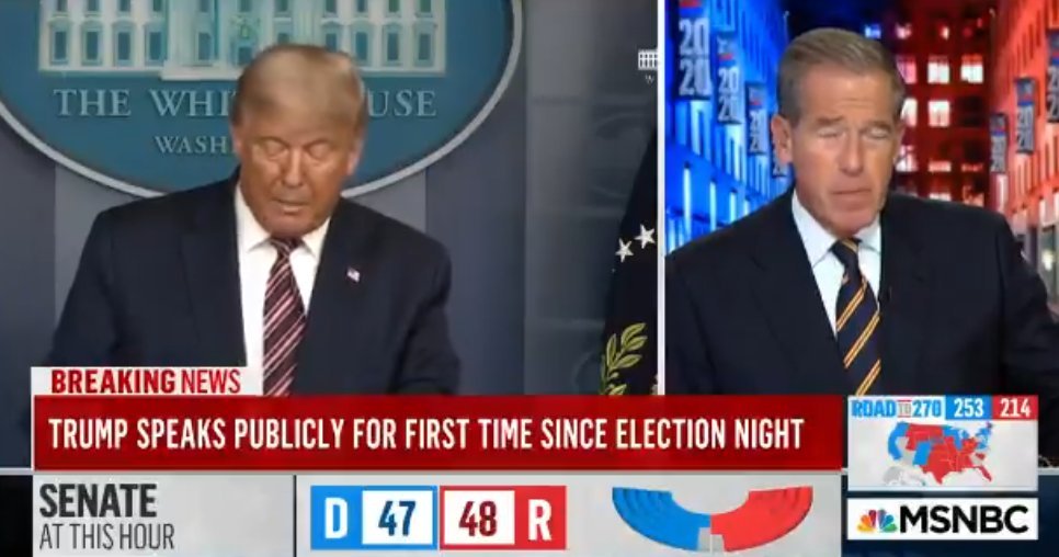 Alors qu’il tenait un nouveau discours depuis la salle de presse de la Maison Blanche à Washington, et qu’il continuait de contester la légalité du scrutin notamment des votes par correspondance, certaines télévisions américaines qui retransmettaient l’allocution ont carrément décidé d’interrompre la diffusion du discours à cause des accusations de fraudes émises par Donald Trump.
