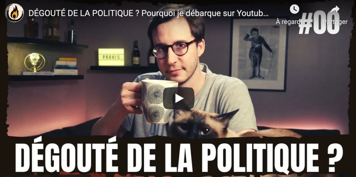 Il a également décidé de lancer un blog et surtout sa propre chaîne Youtube, PRAXIS, afin d’engager un combat politique et plus largement citoyen : « Ce sera aussi et surtout le moyen de rallier toujours plus de gens à notre combat, et pour cela, j’ai plus que jamais besoin de vous. De vos partages, de vos abonnements, de vos idées et suggestions toujours très précieuses. Je sais que je peux compter sur vous. »
