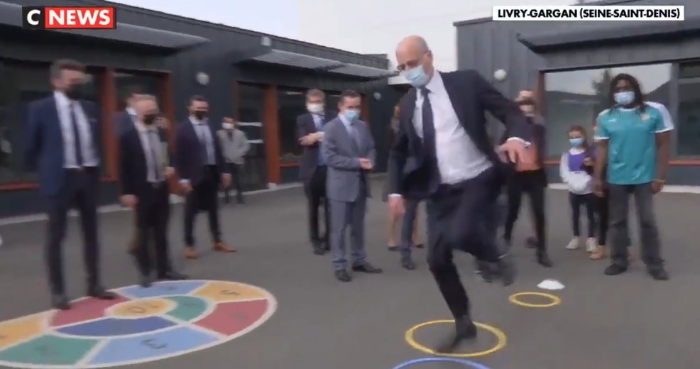 Jean-Michel Blanquer en visite dans un établissement scolaire à Livry-Gargan, le ministre joue à la marelle pic.twitter.com/d1HjMqH4F0