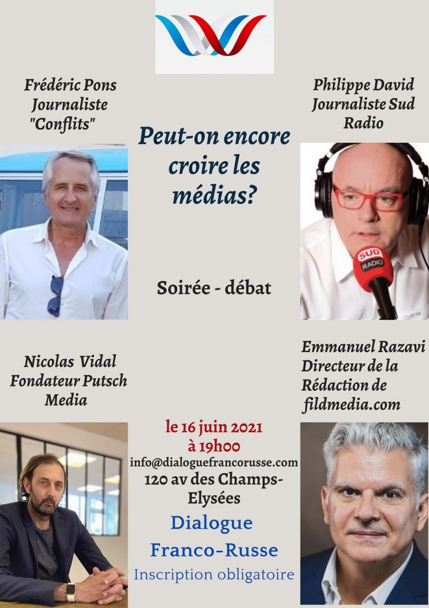 Ce mercredi 16 juin se tenait la débat organisé par le Dialogue franco-russe autour de la questions : peut-on encore croire les médias? Préférons-nous consulter davantage les médias dits alternatifs que les médias “mainstream”?