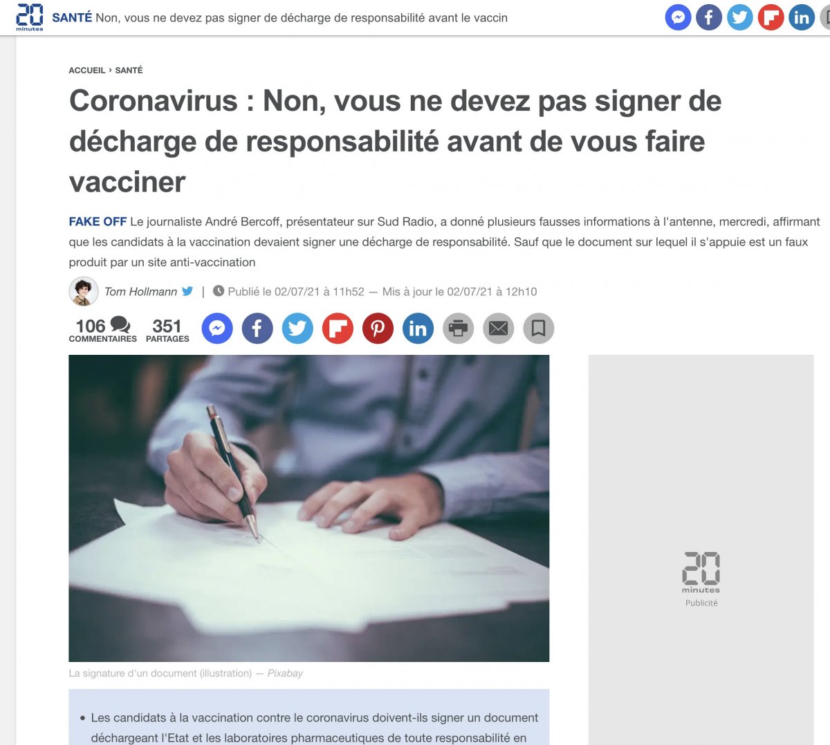 (Vidéo) André Bercoff lit à l’antenne le document de décharge (très étonnant) à signer par les gens qui se font vacciner