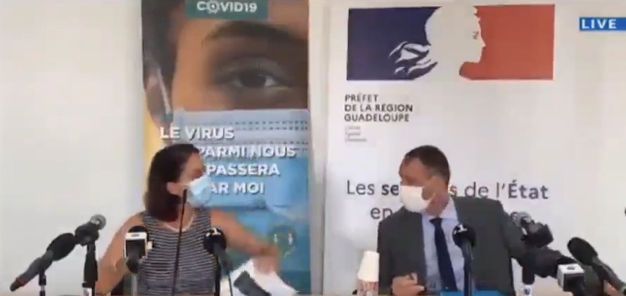 Quelques minutes avant une conférence de presse donnée par le Préfet de Guadeloupe, Alexandre Rochatte, et la directrice générale de l’Agence régionale de santé de Guadeloupe, Valérie Deux, un drôle d’échange a eu lieu entre les deux protagonistes.