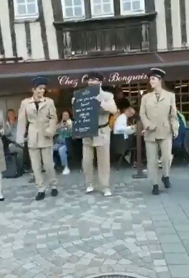 Certains restaurateurs ont beaucoup d’humour. Il y a quelques jours, le patron du restaurant Odette Bongrain situé sur le port de Dinan (Côtes-d’Armor) a interprété menu en main sur la terrasse de son établissement accompagné de ses employés, les gendarmes de Saint Tropez pour protester contre le Pass sanitaire.