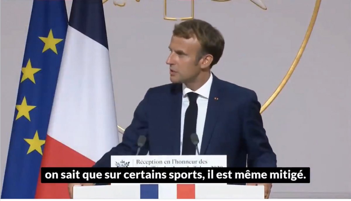 Et ce qui est fascinant, c’est le champ sémantique entrepreneurial utilisé par le chef de l’Etat tout au long de cette prise de parole : pacte de performance, investissement, capital sportif-entrepreneur, potentialité. Emmanuel Macron a également abordé les objectifs qu’il souhaite atteindre pour Paris 2024 en évoquant un partenariat public-privé. Enfin, comme tout bon directeur commercial, il a joué de la comparaison avec la concurrence notamment avec les Britanniques « qui investissement moins de fonds publics mais qui ont de bien meilleurs résultats que nous (…) On doit faire beaucoup plus … beaucoup plus ! ».