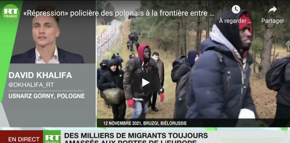Deux journalistes de RT France ont été arrêtés à la frontière entre la Pologne et la Biélorussie ce lundi 15 novembre alors qu’ils suivaient les événements dans cette partie de l’Europe où de nombreux migrants tentent de forcer l’accès à l’espace Schengen.
