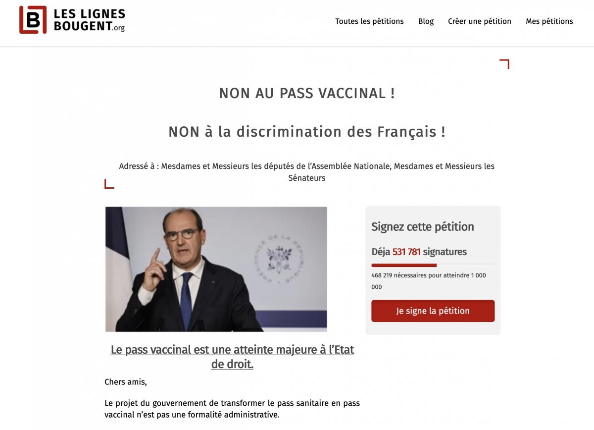 Une pétition contre le pass vaccinal dépasse en quelques jours les 500 000 signatures sur le web