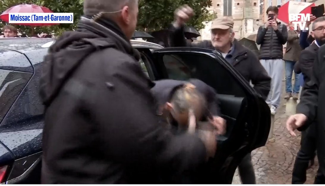 Eric Zemmour en déplacement à Moissac dans le Tarn-et-Garonne a été victime d’un jet d’oeuf à sa sortie de voiture.
