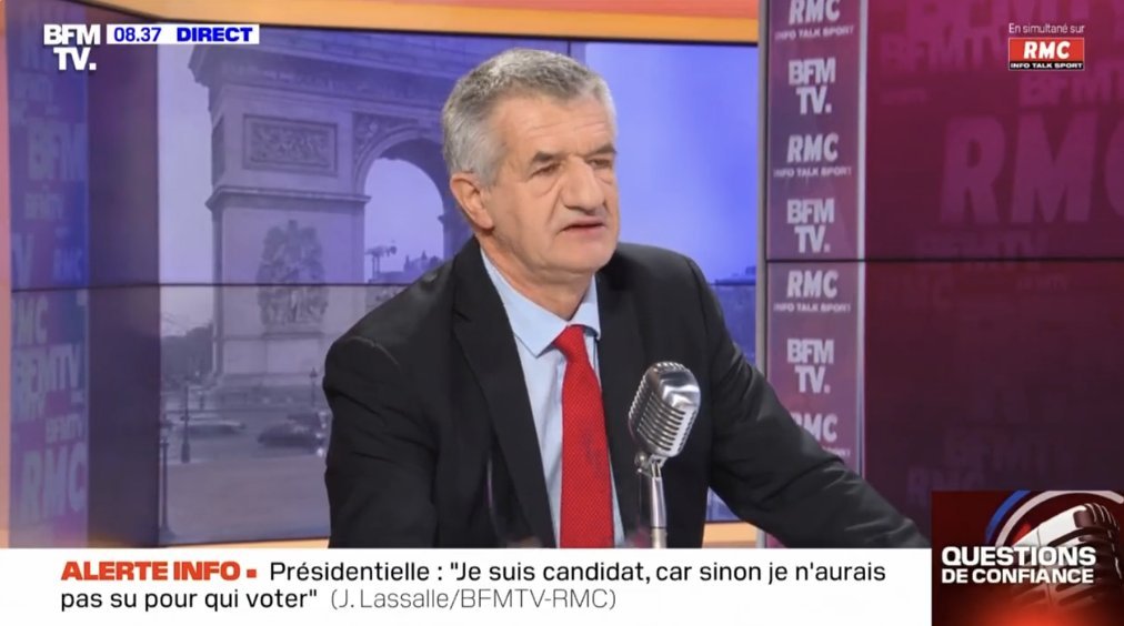 Jean Lassalle qui, pendant ces deux dernières semaines de campagne, a accès aux grand médias comme chaque candidat, est en roue libre et en profite pour dire ce qu’il a dire, face aux éditorialistes et journalistes de renom.