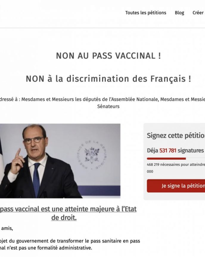 Une pétition contre le pass vaccinal dépasse en quelques jours les 500 000 signatures sur le web