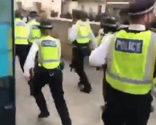 (Vidéo) En Angleterre, des policiers fuient les manifestants sous une pluie de projectiles
